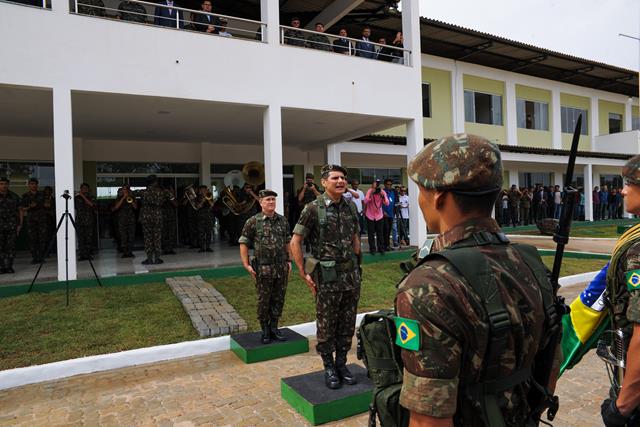 INSTALAÇÃO DA 22ª BRIGADA DE INFANTARIA DE SELVA (MACAPÁ - AMAPÁ) Macapá (AP) – Uma cerimônia, no dia 26 de janeiro de 2018, marcou a inauguração da 22ª Brigada de Infantaria de Selva, a “Brigada da Foz do Amazonas”, e a assunção do Comando da nova Grande Unidade Operacional pelo General de Brigada Luiz Gonzaga Viana Filho. A criação da Brigada está alinhada com a Estratégia Nacional de Defesa, de priorização da região amazônica pelas Forças Armadas, guarnecendo a área de fronteira do Brasil com Guiana, Guiana Francesa e Suriname. A Brigada vai reforçar a presença militar, a capacidade operacional e melhorar o gerenciamento administrativo do Exército na Amazônia Oriental. “Hoje é um dia histórico para o Exército Brasileiro e para o Estado do Amapá. Estamos oficializando a instalação de um Comando de Brigada numa área estratégica”, declarou o Comandante Militar do Norte, General de Exército Carlos Alberto Neiva Barcellos, durante a formatura. Ele ainda destacou o esforço de todos os envolvidos na concretização do projeto e na construção das instalações para a Brigada.