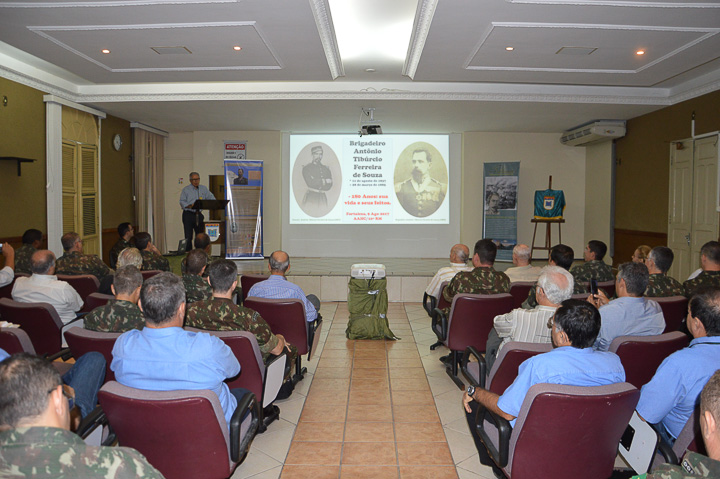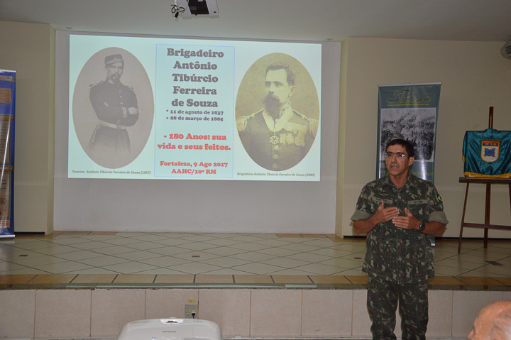 PALESTRA SOBRE A VIDA E FEITOS DO BRIGADEIRO TIBÚRCIO A 10ª Região Militar (10ª RM), em prosseguimento às comemorações dos 180 anos do Brigadeiro Antônio Tibúrcio Ferreira de Souza, realizou, na manhã do dia 9 de agosto, no seu auditório, uma palestra sobre "A vida e os feitos do Brigadeiro Tibúrcio" - herói cearense da Guerra do Paraguai. As imagens abaixo ilustram o evento.