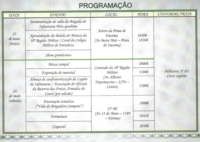 Comemoração Nacional da Arma de Infantaria ( 2009) e do Bicentenário de Nascimento do Brigadeiro Sampaio (2010) Legião da Infantaria - Presidência Executiva - Fortaleza - Ceará - ©2008 - Todos os direitos reservados |