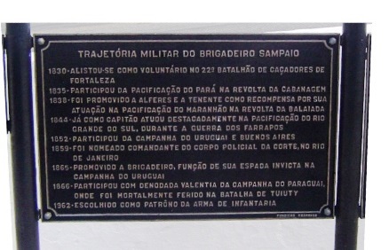LEGIÃO DA INFANTARIA - O PANTEON DE SAMPAIO (II) leginf©allphotos O Panteão Brigadeiro Sampaio, monumento inaugurado em 24 de maio de 1996, está localizado na parte frontal da Fortaleza de Nossa Senhora da Assunção, sede do Comando da 10ª Região Militar – Região Martins Soares Moreno, em Fortaleza, Ceará. Nele estão depositados os restos mortais do Patrono da Arma de Infantaria do Exército Brasileiro - Brigadeiro Antônio de Sampaio, herói nacional, que tombou em combate durante a Guerra da Tríplice Aliança que envolveu a Argentina, Brasil, Paraguai e Uruguai.