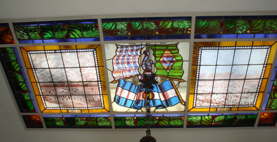 Interior da Cripta Guerreiros do Paraguai, destacando-se os vitrais do artista plástico argentino Cândido Lopes que acompanhou etapas da Guerra da Tríplice Aliança.
