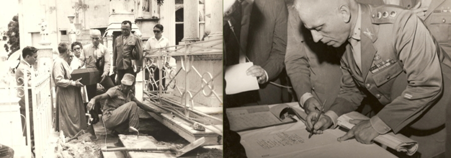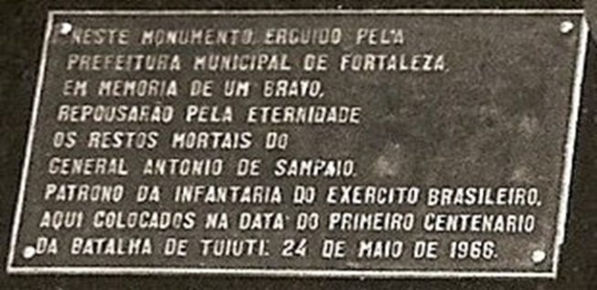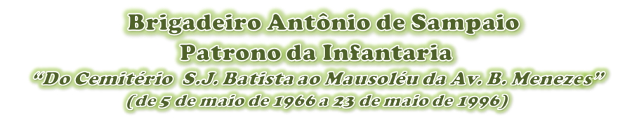 leginf©photos Nas Comemorações do Centenário da Batalha de Tuiuti, por iniciativa do Comando da 10ª Região Militar, com apoio do Governo do Ceará e da Prefeitura de Fortaleza, foram exumados os restos mortais de Sampaio, do seu Mausoléu do Cemitério São João Batista, em 5 de maio de 1966. Após ter sido elaborado o respectivo protocolo da exumação, os restos mortais do Patrono da Infantaria, foram depositados em 24 de maio de 1966, no Mausoléu oferecido pela Prefeitura Municipal ao Exército Brasileiro, na Avenida Bezerra de Menezes, à frente do quartel do CPOR, onde permaneceria até 24 de maio de 1996, quando foram trasladados para a sua derradeira e definitiva morada: o Panteão Brigadeiro Sampaio, erigido à frente do Comando da 10ª Região Militar.
