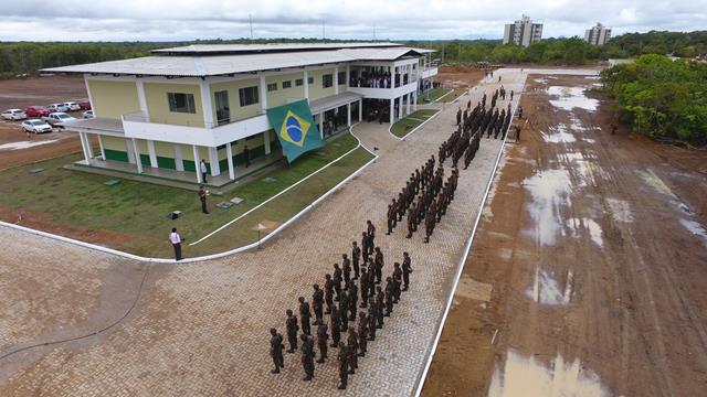 INSTALAÇÃO DA 22ª BRIGADA DE INFANTARIA DE SELVA (MACAPÁ - AMAPÁ) Macapá (AP) – Uma cerimônia, no dia 26 de janeiro de 2018, marcou a inauguração da 22ª Brigada de Infantaria de Selva, a “Brigada da Foz do Amazonas”, e a assunção do Comando da nova Grande Unidade Operacional pelo General de Brigada Luiz Gonzaga Viana Filho. A criação da Brigada está alinhada com a Estratégia Nacional de Defesa, de priorização da região amazônica pelas Forças Armadas, guarnecendo a área de fronteira do Brasil com Guiana, Guiana Francesa e Suriname. A Brigada vai reforçar a presença militar, a capacidade operacional e melhorar o gerenciamento administrativo do Exército na Amazônia Oriental. “Hoje é um dia histórico para o Exército Brasileiro e para o Estado do Amapá. Estamos oficializando a instalação de um Comando de Brigada numa área estratégica”, declarou o Comandante Militar do Norte, General de Exército Carlos Alberto Neiva Barcellos, durante a formatura. Ele ainda destacou o esforço de todos os envolvidos na concretização do projeto e na construção das instalações para a Brigada.