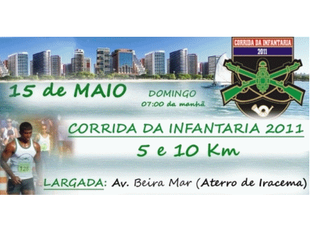 CORRIDA DE RUA ABRE A COMEMORAÇÃO NACIONAL DA INFANTARIA EM 2011 23bc-comsoc©photos Abrindo a Comemoração Nacional da Arma de Infantaria em Fortaleza foi realizada no dia 15 de maio, na Avenida Beira Mar mais uma edição da Corrida da Infantaria. O tempo chuvoso ajudou aos quase 800 corredores inscritos a participarem da prova. A largada aconteceu às 7 horas e os corredores enfrentaram um percurso plano com as opções para os 5 ou 10 quilômetros.