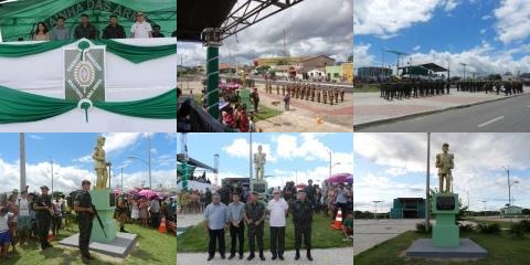 A sequência de fotos ilustra os eventos na terra natal do Patrono da Arma de Infantaria, que se consagraria de forma definitiva, na galeria dos Heróis da Pátria, ao tombar com bravura, em 24 de maio de 1866, na sangrenta Batalha de Tuiuti, em terras guaranis.