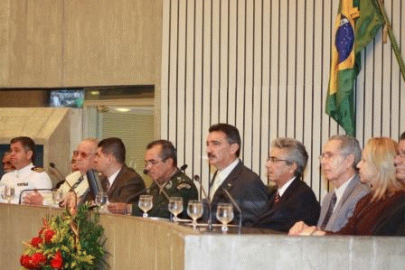 Foram entregues pela Assembléia, placas alusivas ao evento aos Comandante da 10ª RM e Coordenador do Bicentenário de Sampaio.